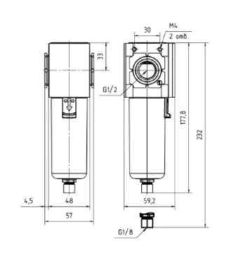 Монтажные размеры1/2 G; 57 х 59,2 х 232