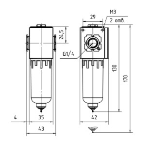 Монтажные размеры1/4 G, 35 х 42 х 170