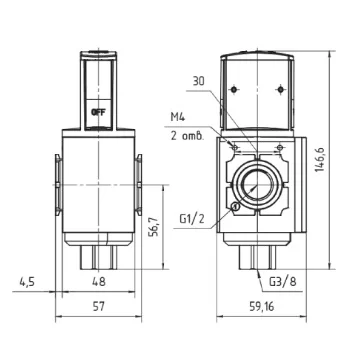 Монтажные размеры1/2 G, 57 x 59,16 x 146,60
